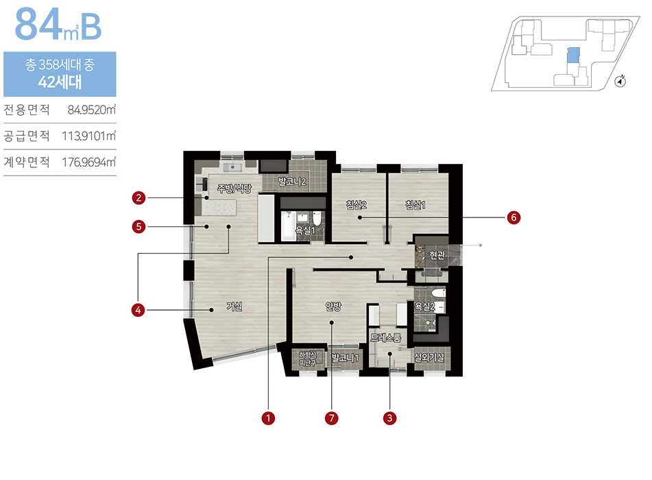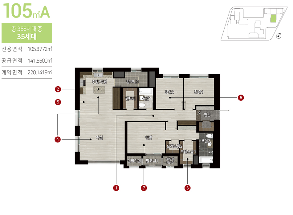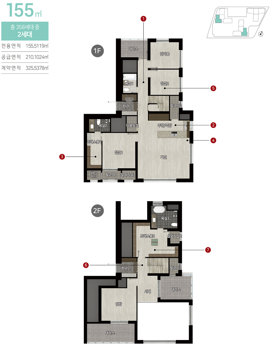 84㎡~155㎡의 여유로운 평면구성에